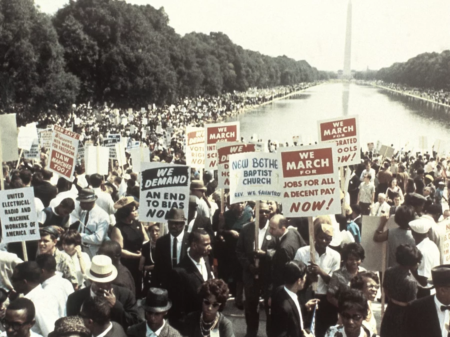 Crowds gather at Washington Monument for a civil rights demonstration on Aug. 28, 1963